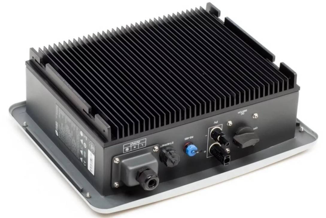 Гибридный преобразователь подведен к опционной фотоэлектрической панели для подзарядки аккумулятора, сетевой – соединен с основным солнечным модулем.
