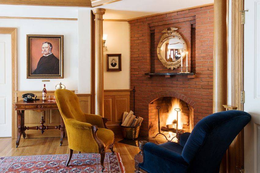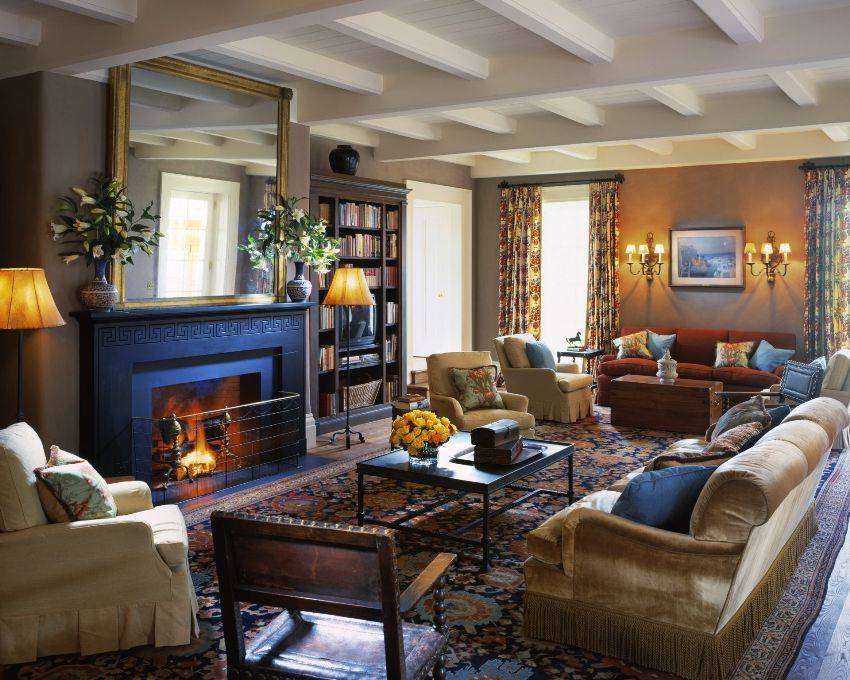 Важной деталью классической гостиной является камин. В загородном доме он может быть настоящим функциональным предметом