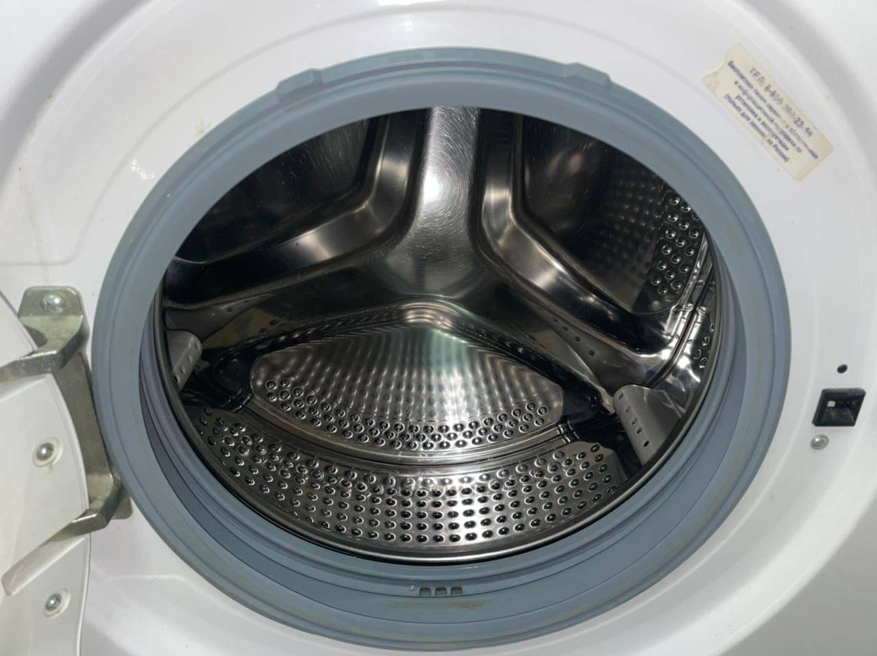Модель с загрузкой белья в 8 килограмм. Следует учитывать, что увеличение вместимости барабана повышает и общий вес стиралки.