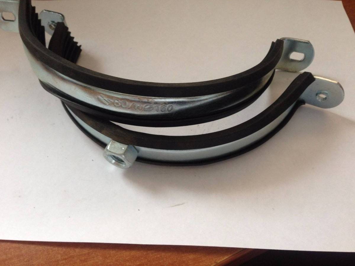 Хомут-крепеж состоит из металлической оболочки и гофрированной резиновой прокладки, которая предотвращает появление шума от вибрации и чрезмерное сдавливание при закручивании. Обязательным условием продукции данного типа является наличие бокового крепления, которое чаще всего выполнено в виде приваренной гайки – с ее помощью, труба монтируется/подвешивается на стену или потолок.
