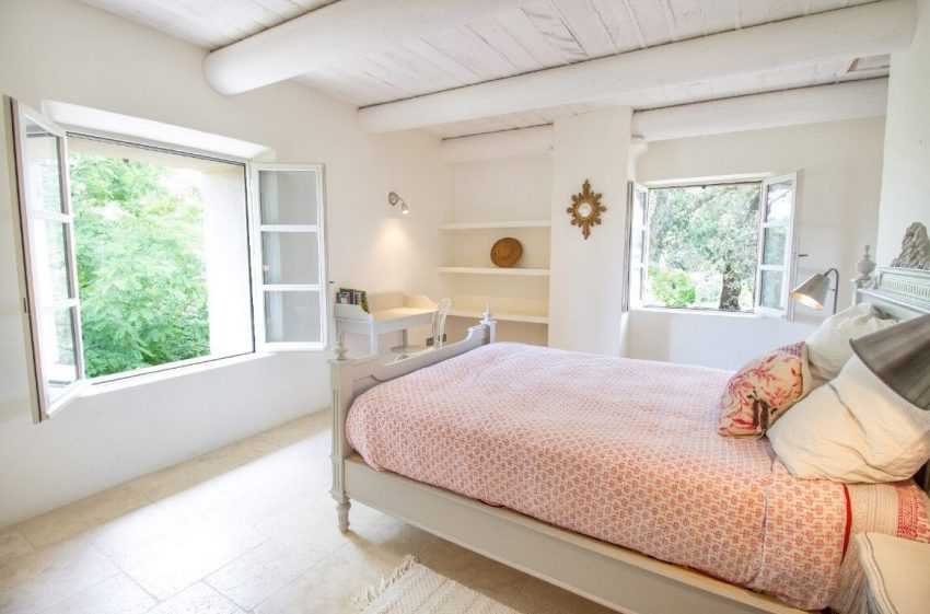 Прозрачные, легкие занавески на прямоугольных окнах беспрепятственно обеспечат проникновение солнечных лучей, наполняя природным простором спальное помещение. Половое покрытие традиционно выполняют из шпунтованной половой доски натурального колера. Предметы спальной мебели в Провансе выполняют из природной древесины в естественных светлых тонах.