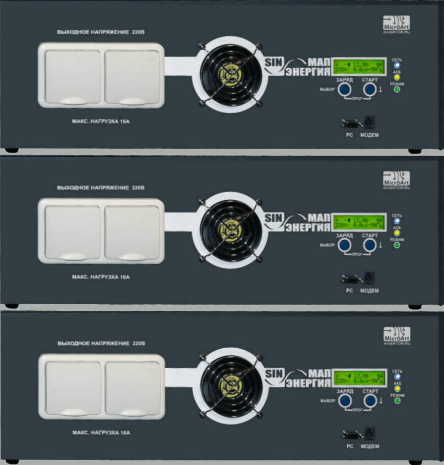 Диапазон мощностей модельного ряда – 1,2-5 кВт, КПД – 95%, тип напряжения – синусоида.