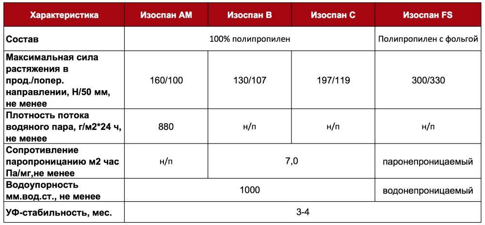 Виды Изоспан (Isospan)
