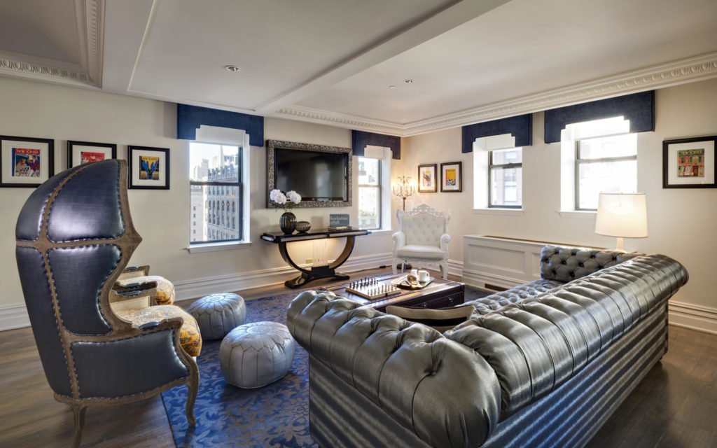 Комфортная обстановка создается за счет установки удобной мебели для приема. Это могут быть габаритные диваны с декоративными вышивками. Любые модели мягких уголков допустимо выбирать белого или бледно-серого оттенка, при условии, что контрастирующим элементом будут кресла или пуфы.