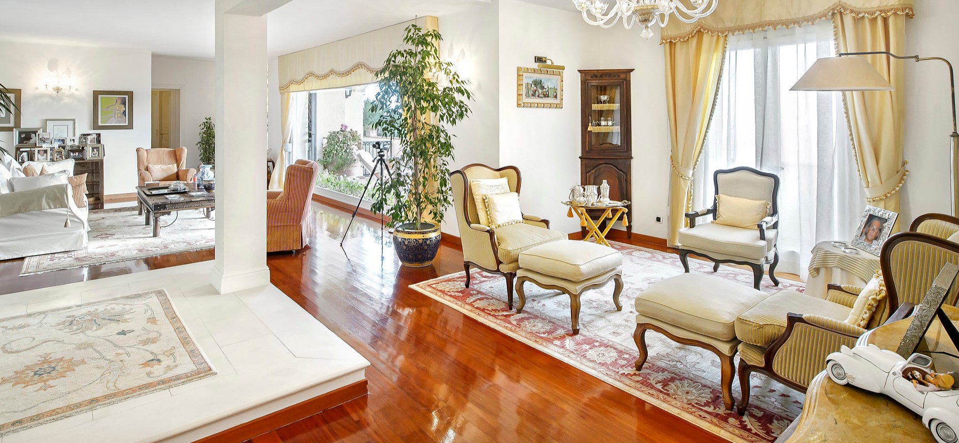 Для формирования элегантной и утончённой обстановки вы можете подобрать керамогранит с глянцевой поверхностью или шлифованный природный камень, а также деревянный паркет и текстурный ламинат. Дизайнеры допускают окрашивать пол светлым колером, чтобы придать ему свежий внешний вид.
