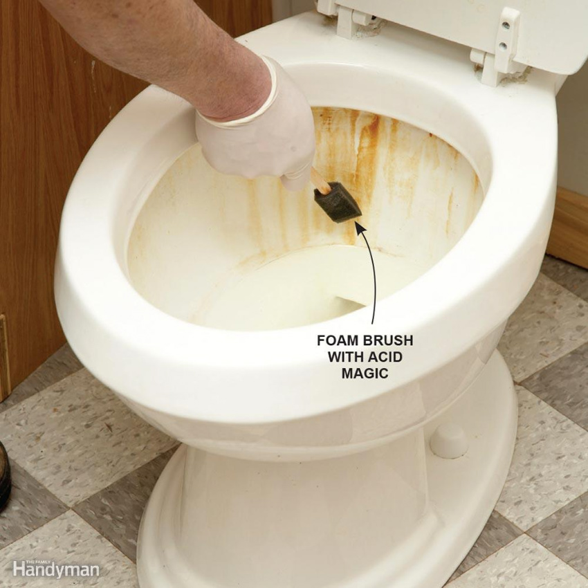 Если в вашей водопроводной воде высокое содержание железа, и на ванной или унитазе остаётся ржавчина, это решение идеально подойдёт для вас. Современные кислотные средства удаляют ржавчину не хуже, чем соляная кислота, но при этом более безопасны и приятны в использовании
