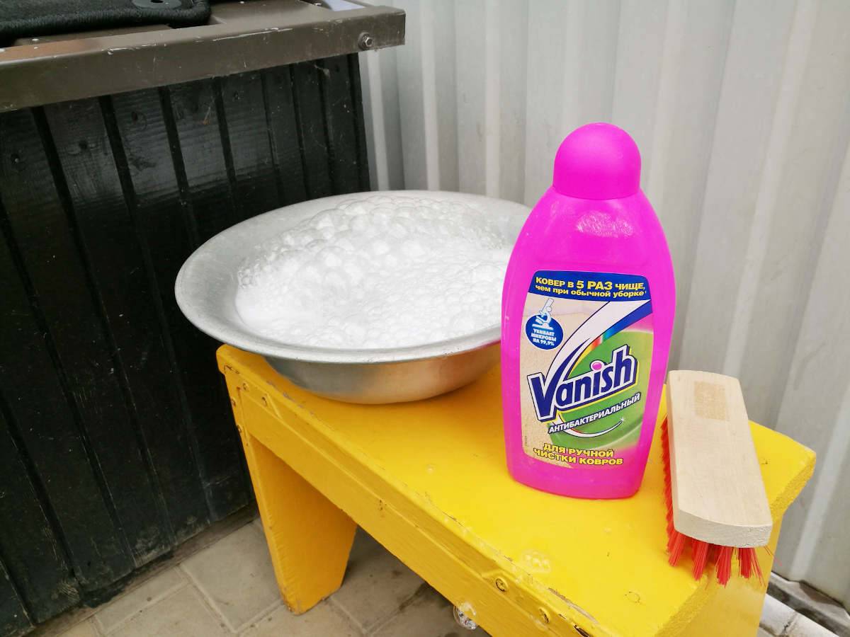 - Ваниш. Универсальный состав, пригоден для чистки любых ковров.