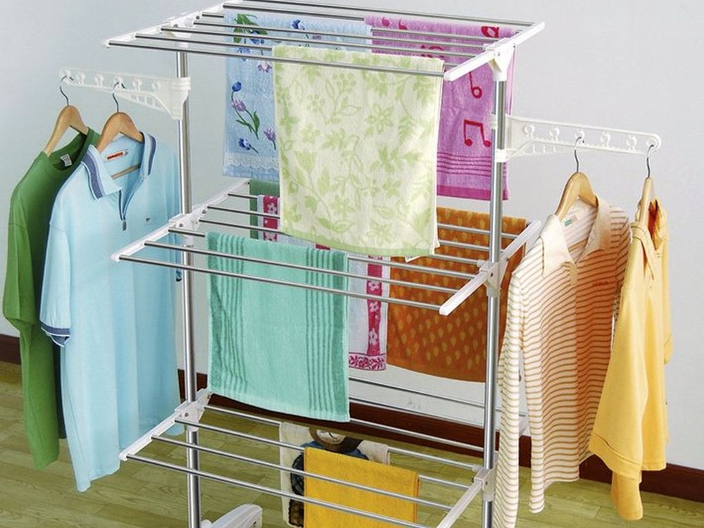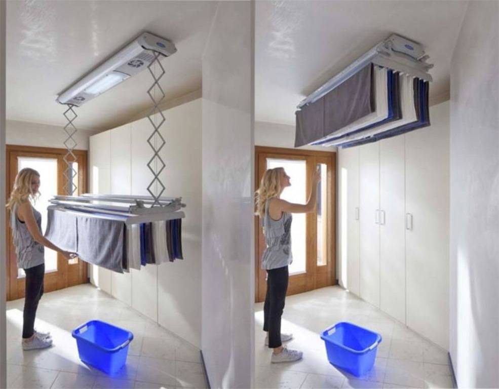 Существует множество раскладных моделей сушилок, позволяющих размещать в разложенном состоянии в любой комнате, на лоджии. Есть конструкция встроенного типа в шкаф, вмещающая много вещей. При надобности достаточно выдвинуть систему.
