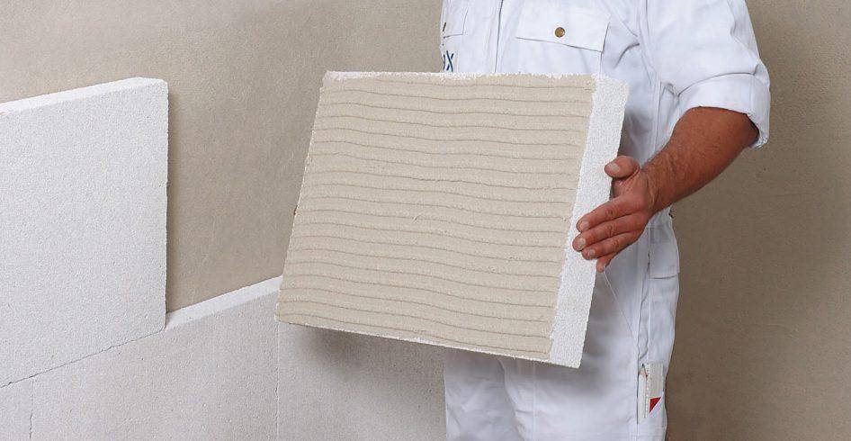 Для работы потребуется шпатель зубчатый. При фиксации материала на легкий ячеистый бетон состав наносится плотным ровным слоем. Нанесение его на несколько участков стены используется для зданий из бетона, кирпича.