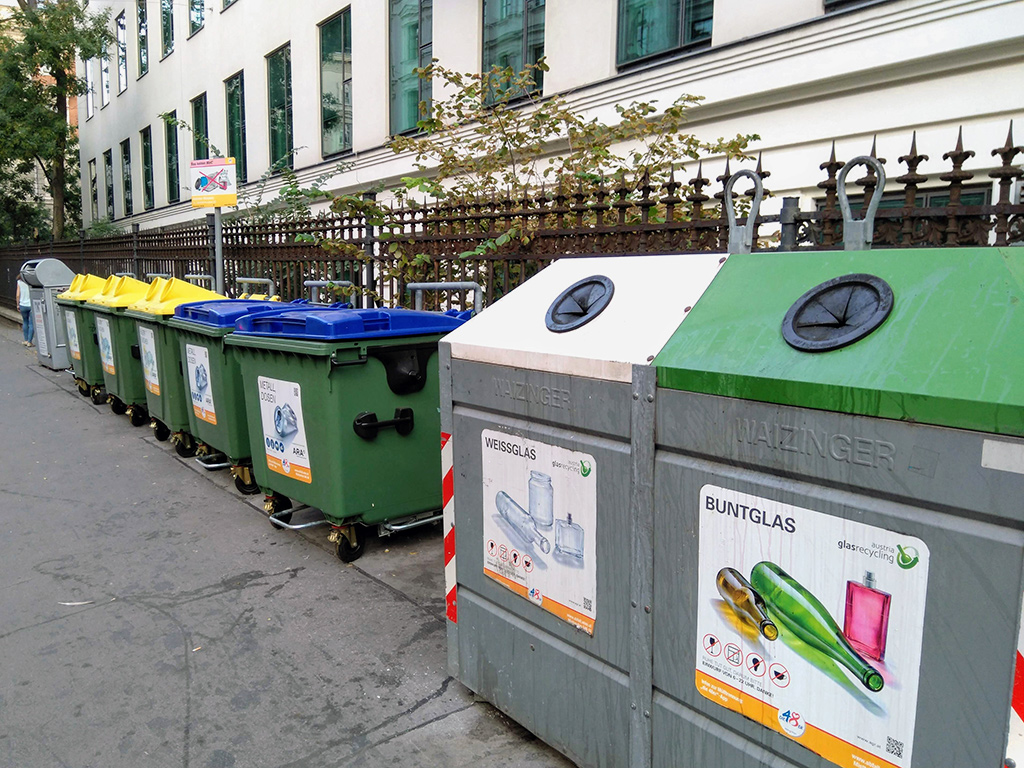 Даже в грязном Париже местные жители бережно рвут бумажки, чтобы бросить в пищевой бак — лично наблюдал за этим с открытым ртом. В Вене же прозрачное стекло отделяют от разноцветного, и это в порядке вещей.