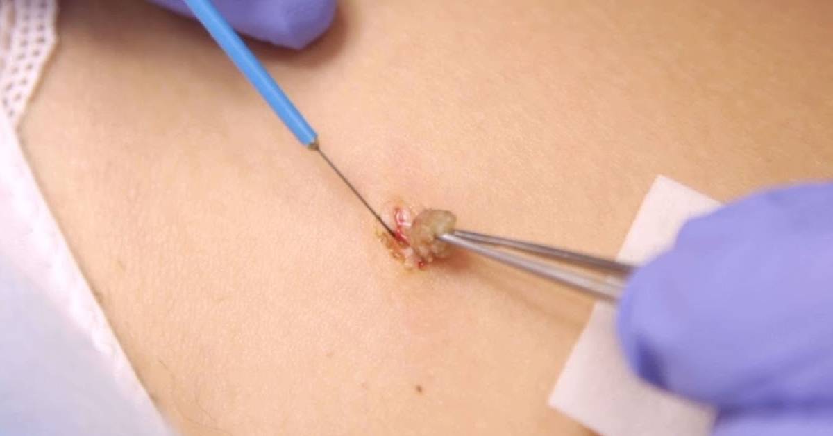 Точно сказать, чем помазать висячую родинку, может только врач-дерматолог. Но основным способом быстро и без проблем от нее избавиться является все же удаление. Наиболее безопасный на сегодня метод предусматривает использование радиоволнового аппарата «Сургитрон».