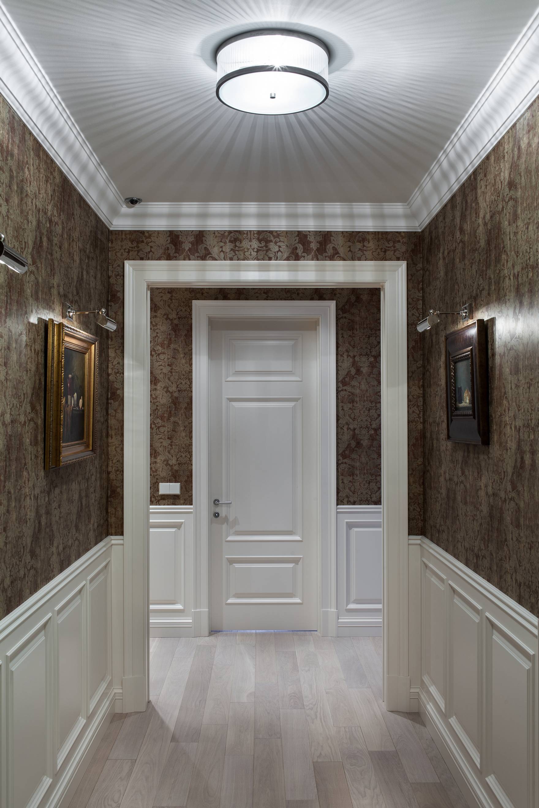 и классическом стиле. Но применять его рекомендуется только для помещений с достаточной высотой потолка, поскольку горизонтальное членение стен визуально опускает его линию.
