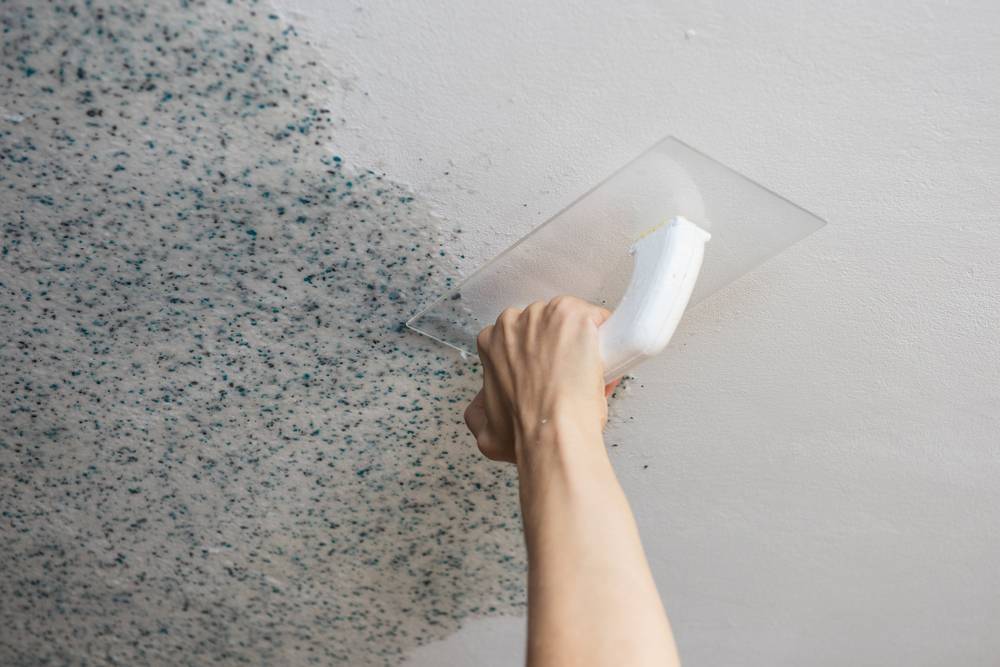 Потолок не должен быть идеально гладким. Такое покрытие лучше ложится на шероховатую основу.