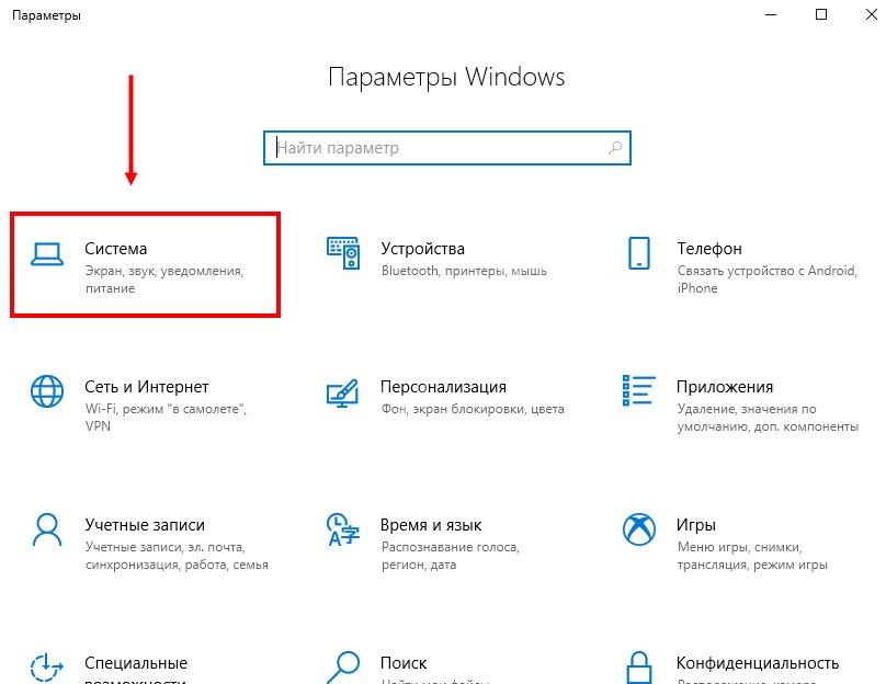 На ПК проходим стандартный путь Пуск → Параметры → Система.