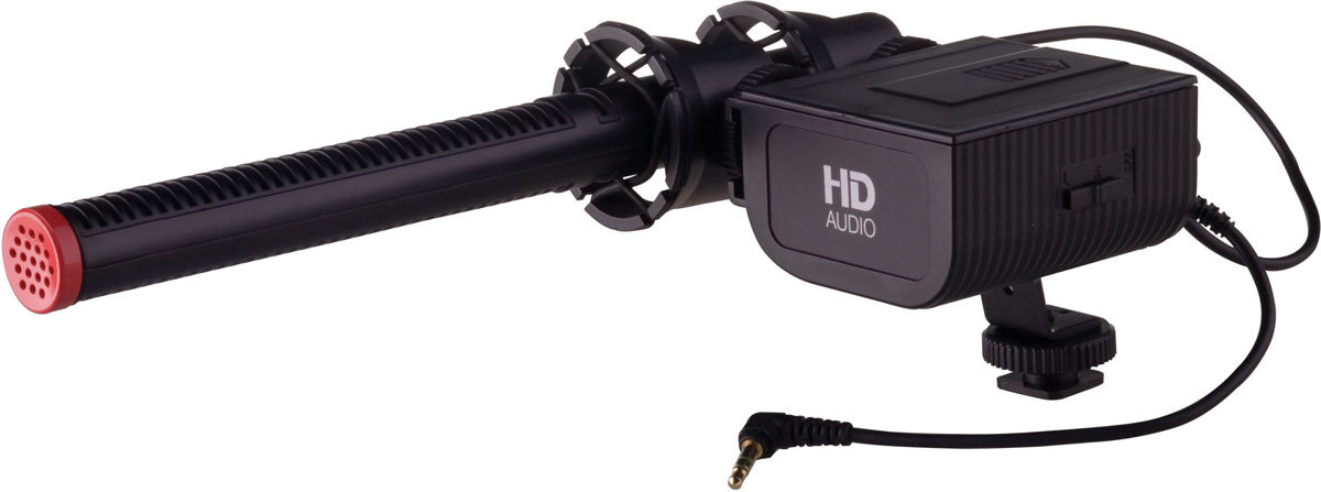 3. Микрофон-пушка предназначен для использования на открытом пространстве, поэтому нашел широкое применение в кинематографе и журналистике. Это конденсаторный микрофон с очень узкой направленностью, он воспринимает звук, идущий только с фронтальной стороны, остальные звуки заглушаются, благодаря фронтальному сдвигу.