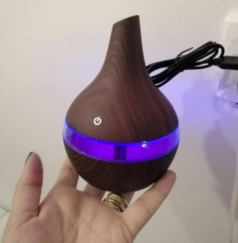 Внешне напоминает некую чудо-лампу с космическо-этническими мотивами: деревянные половинки перечеркнуты прозрачным пластиком с подсветкой, цвет которой можно выбрать по настроению. Так что не только наполнит комнату ароматом, но и украсит ее.