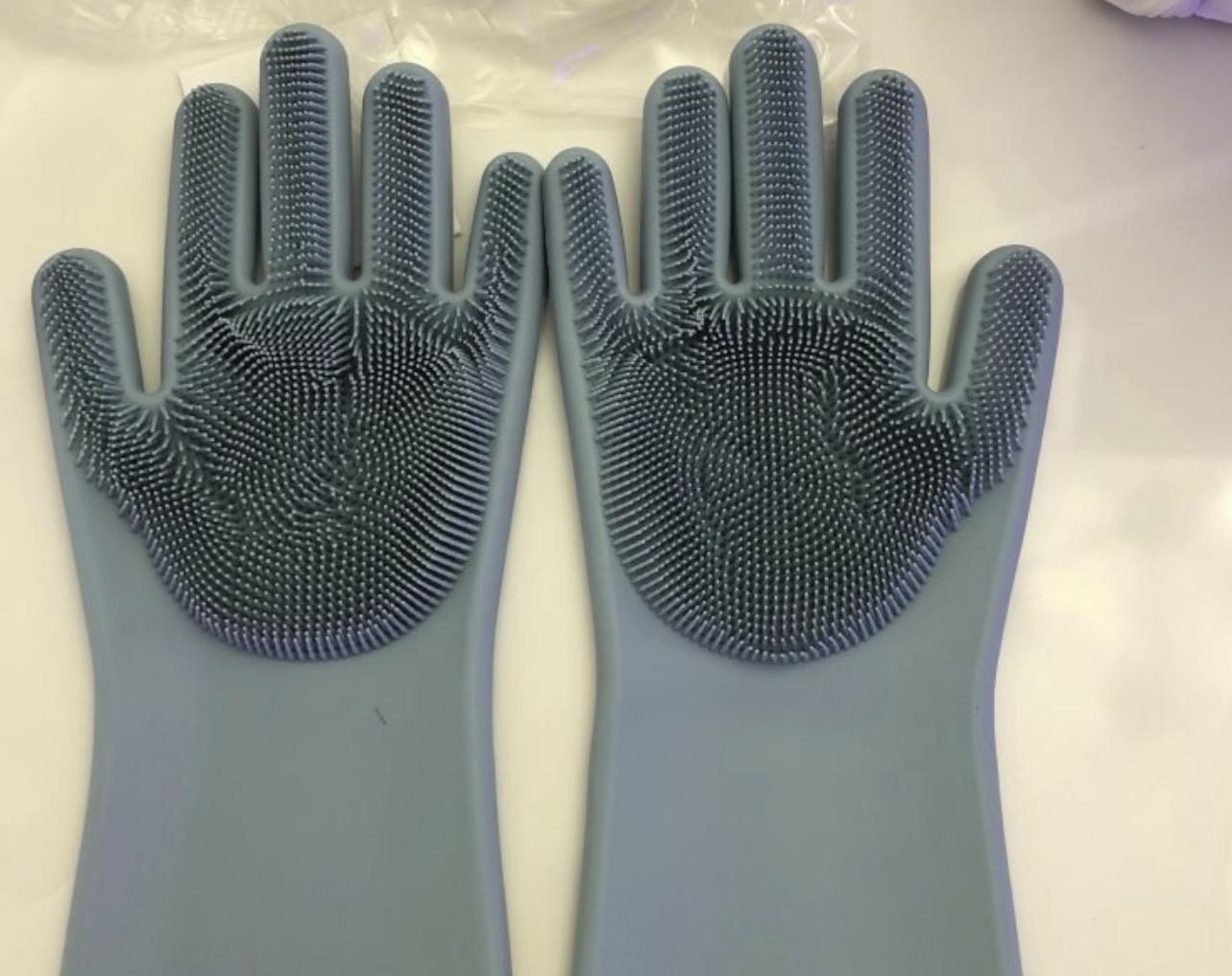 По внешнему виду – обычные резиновые перчатки, но с одной стороны нанесена прочная силиконовая щетина длиной чуть меньше сантиметра. Такая поверхность служит: