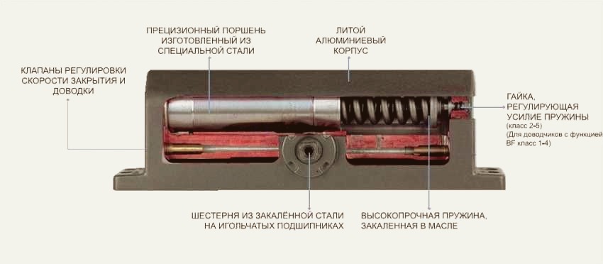 Перед тем, как самостоятельно отрегулировать доводчик, установленный на коробке входной двери подъезда, необходимо изучить его конструкцию и принцип действия.