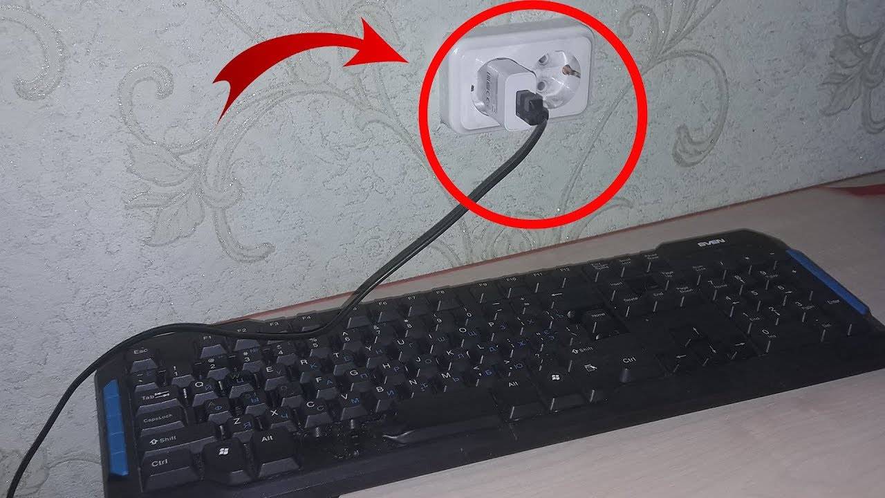 - Найти на компьютере USB-гнездо и воткнуть клавиатуру с переходником в него.