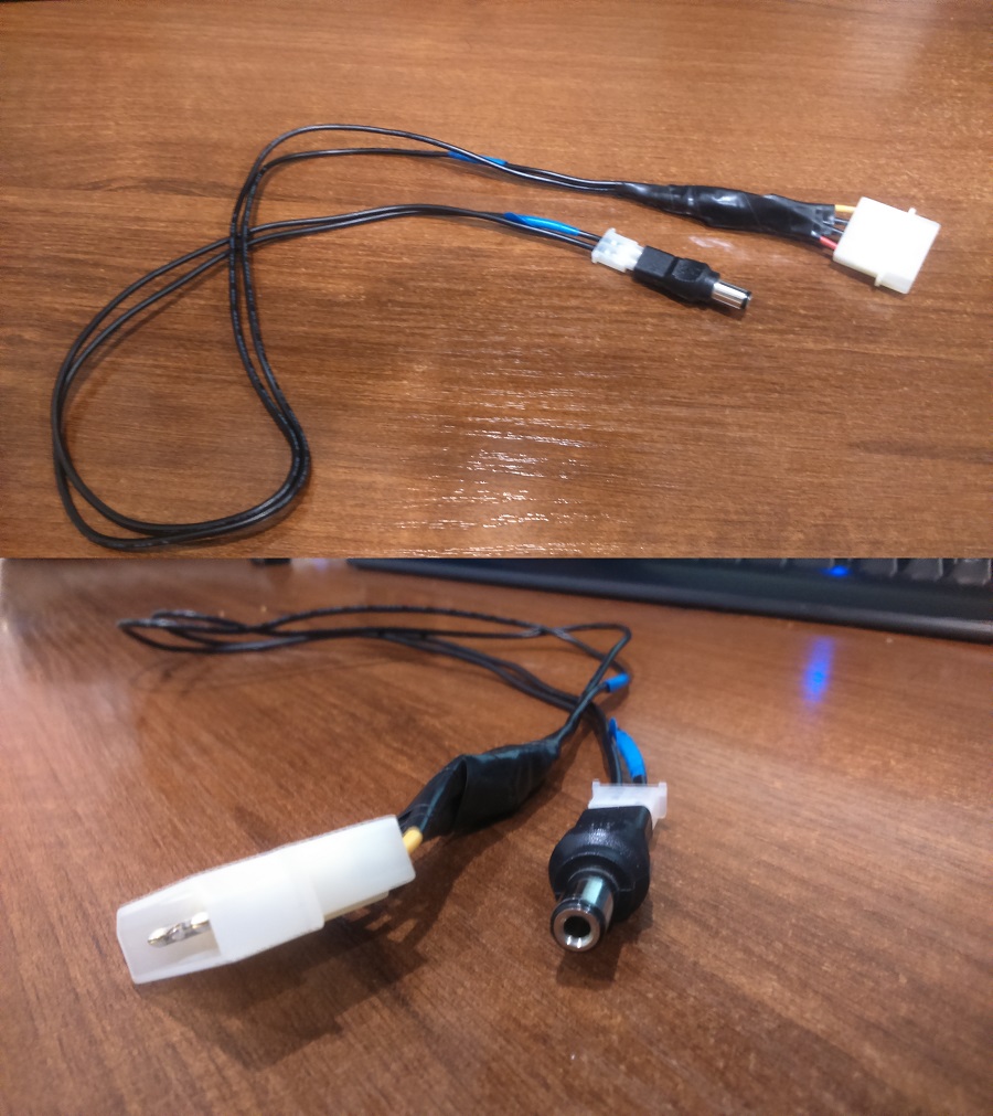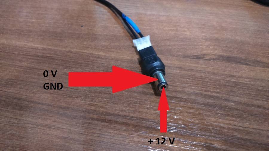 - Желтый молексный провод с центральным контактным проводом вилки блока питания (+12 В)