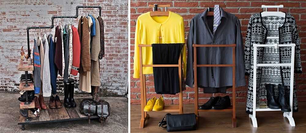 Идеальное место для вешалки в квартире – это прихожая, но если она маленькая, то выделяют специальный угол и создают гардеробную.