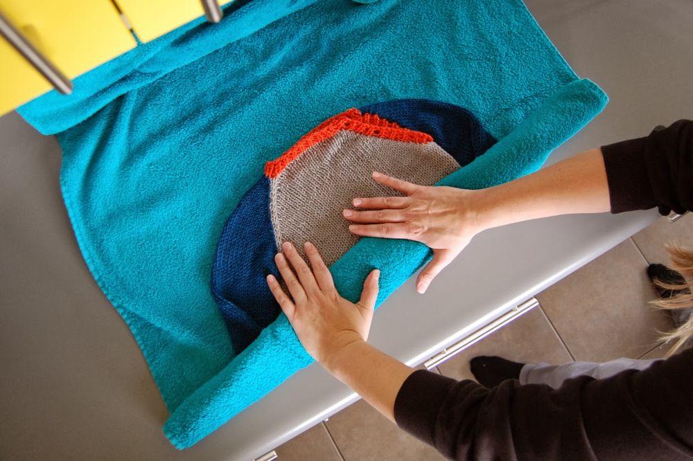 Метод подходит исключительно для вязаных вещей. Непосредственно после стирки разложите вещь на толстом махровом полотенце и оставьте сушиться. Подобная сушка займет относительно много времени, однако после высыхания все неровности и складки исчезнут.