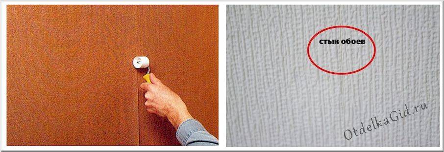 Стыки прокатываются специальным валиком, попытка принудительного стягивания полотен в месте шва приведет к появлению щели после высыхания