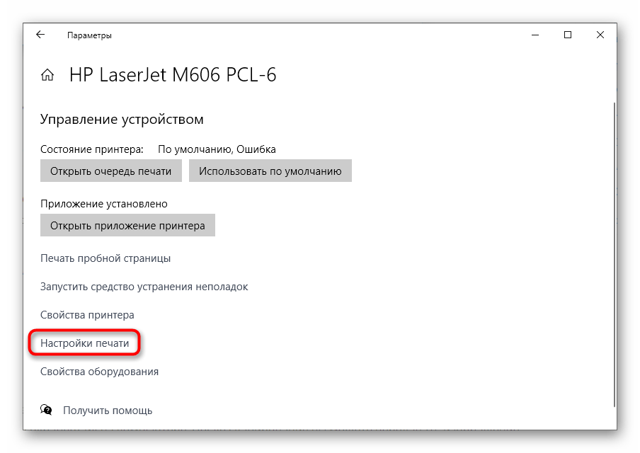 В списке доступных опций отыщите «Настройки печати» и перейдите в этот раздел.