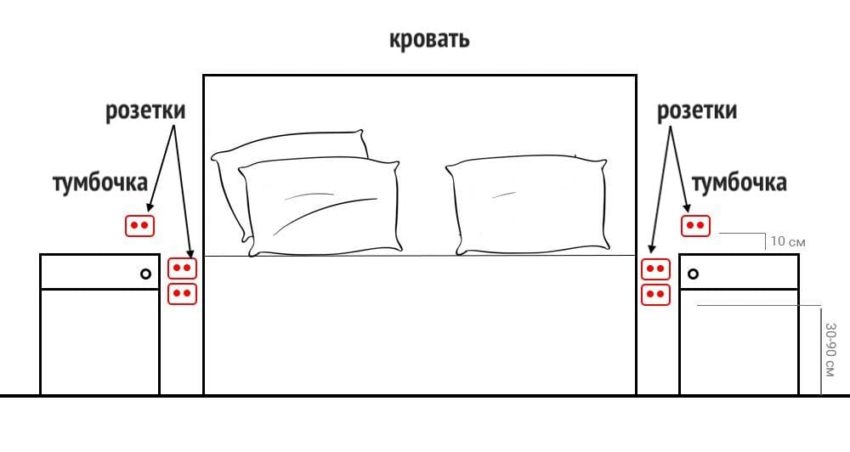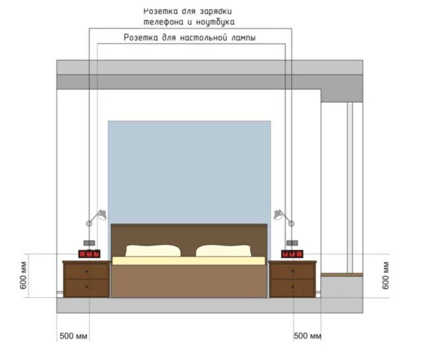 Правильное размещение розеток в спальне предполагает не только подсчет их количества и выбор оптимального места расположения.