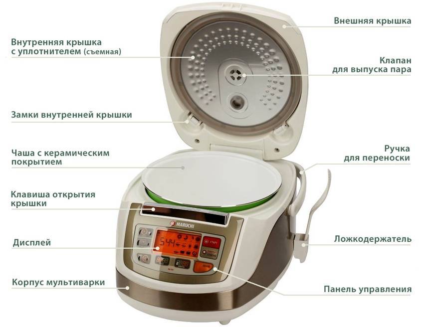 Почти все современные аппараты имеют таймер отсроченного включения. Он позволяет отложить начало готовки на определенный срок и начать выполнение программы, например, к приходу вас и домочадцев домой. Пища будет свежеприготовленной и горячей благодаря функции подогрева. Внутренняя часть крышки должна сниматься для мытья, чтобы избежать накопления запахов от блюд, которые готовились ранее.