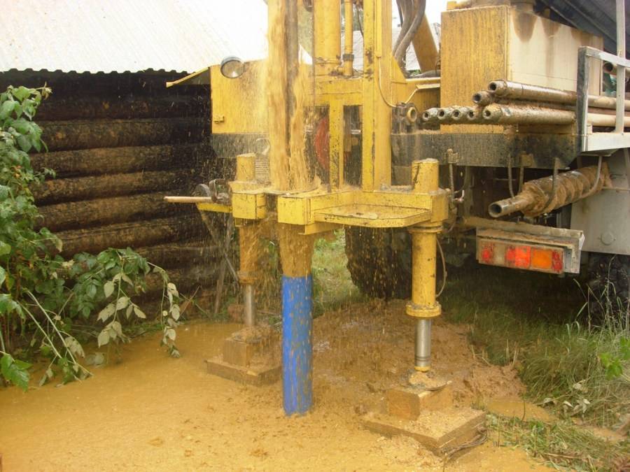 Первое. Чтобы удобно было работать буровикам. Должна быть ровная или слабонаклонная площадка примерно 4 на 8-10 метров прямоугольной формы, на которой помещается трехосная машина, над которой нет проводов (мачта поднимается на 8 метров вверх), под которой нет коммуникаций и которая от строений, фундаментов зданий, корней деревьев, забора удалена на 3 — 4 метра.