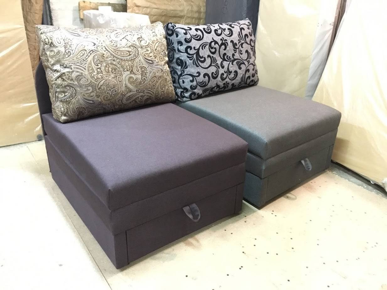 - Узкое кресло-кровать шириной 70 см подойдет для небольшого помещения. На первый взгляд оно не отличается от обычного кресла-кровати на кухню, но при необходимости на нем с легкостью можно разместиться на ночлег. С помощью кресла без подлокотников можно удлинить сидение прямого дивана. Достаточно подобрать обивку похожего оттенка;