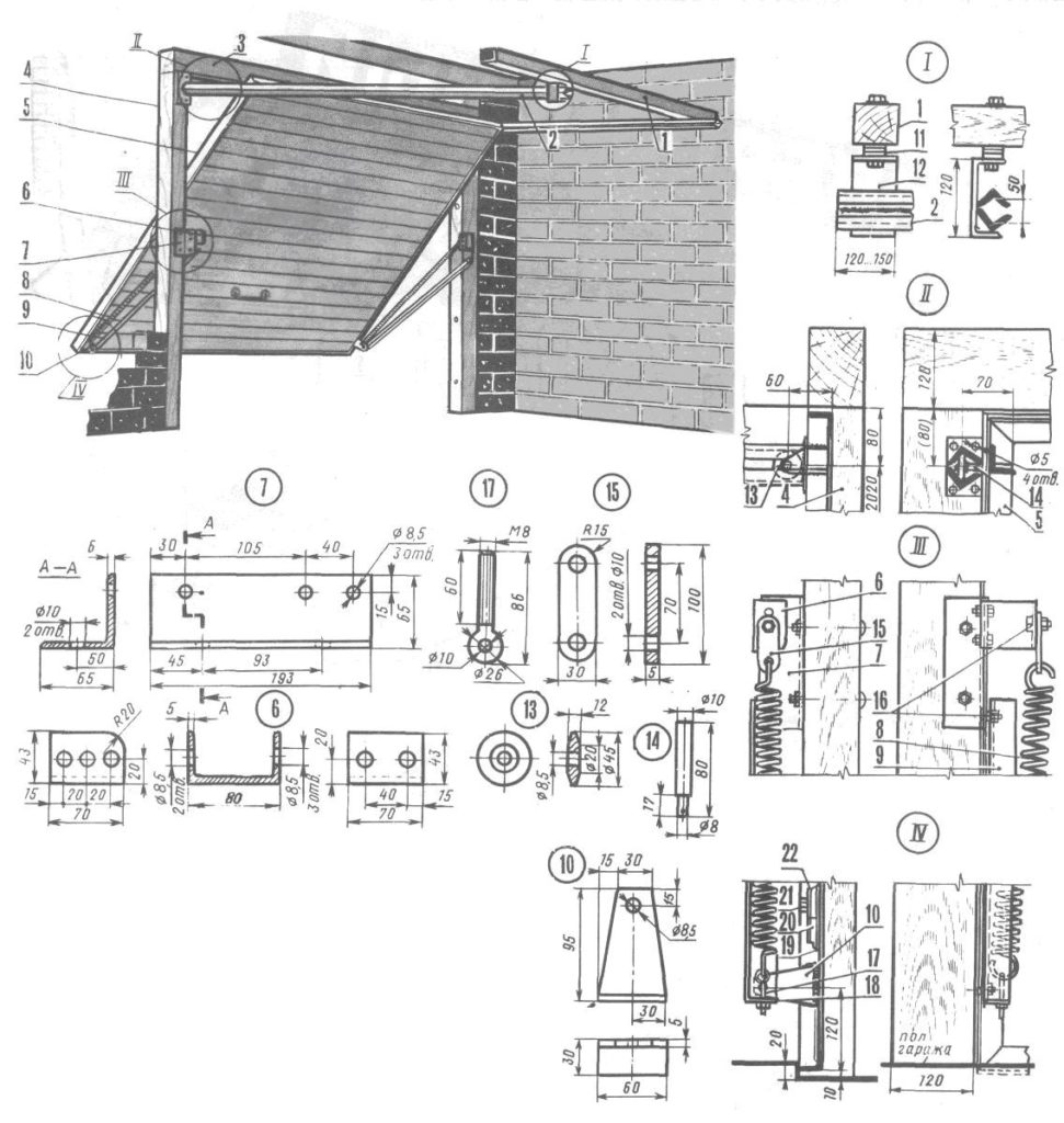 - Материал для создания шарниров и направляющих составляющих – швеллер или уголок.