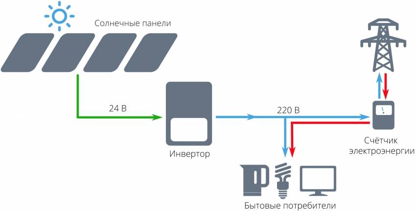 Все солнечные панели являются источниками постоянного тока. Электроэнергию они генерируют только днем. Если есть желание подключить нагрузку постоянного тока днем, то с этим нет никаких проблем, можно подключиться непосредственно от панелей. Но сделать это – не самое хорошее решение, потому что:
