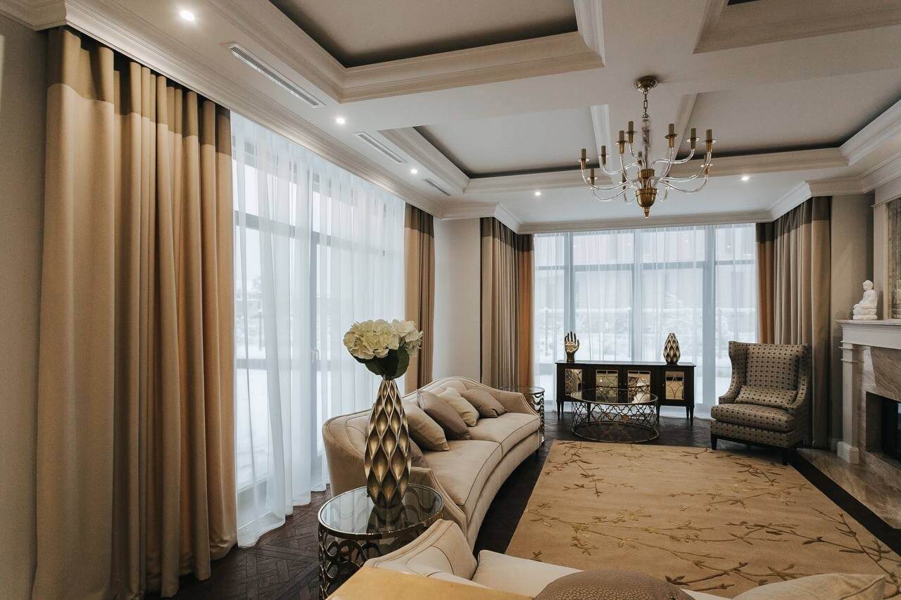 Больше света. Не выбирайте массивные карнизы. Особенно, если у вас небольшая комната. Создайте эффект высоких потолков и больших окон, как это выглядит в роскошных домах.