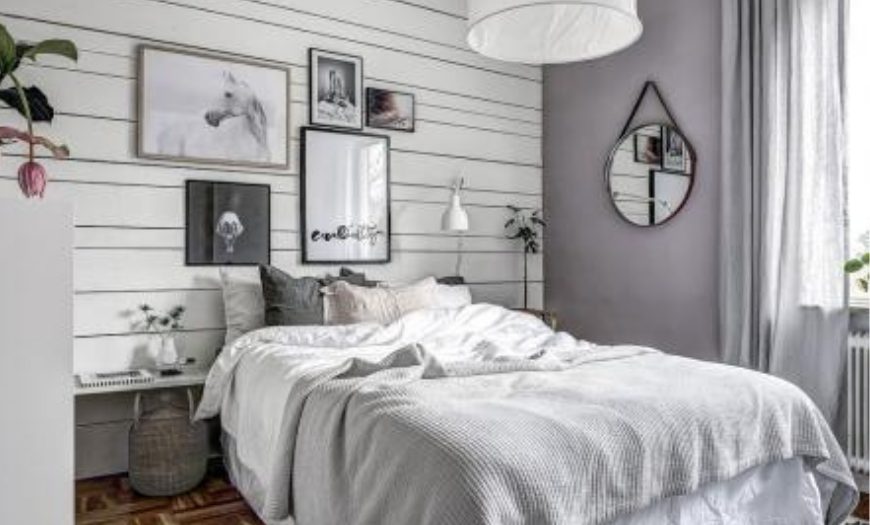 Когда речь заходит о маленькой спальне, вопрос выбора цвета для стен становится крайне актуальным. Так уж сложилось, что небольшие помещения выглядят объемнее и просторнее, если стены имеют светлые оттенки: белый, бежевый, светло-серый и т.п. Любителям скандинавского стиля или минимализма такой вариант точно придется по вкусу.