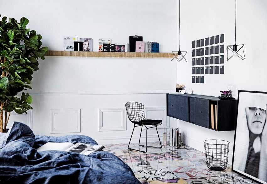 Все элементы подчиняются принципам рациональности, простой геометрии и комфорта. Мебель, которую выбирают для оформления помещения в этом стиле, выполняет сразу несколько функций. Например, кровать, шкаф и компьютерный стол объединяются в одном предмете.