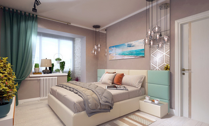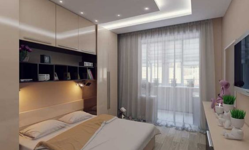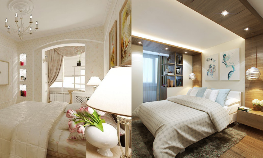 Маленькая спальня с балконом позволяет сделать перепланировку и увеличить площадь помещения. Прибавка в 2-3 кв.м кажется незначительной, но дизайн спальни 13 кв. м разнообразнее, чем комнаты в 10 кв.м.