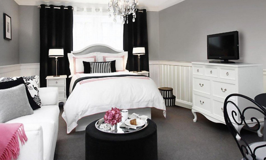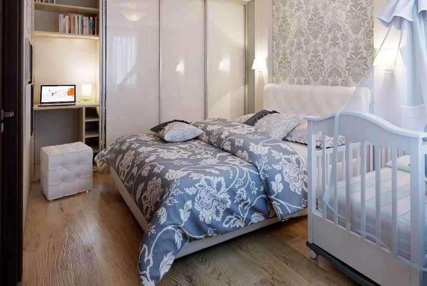 при выборе цветовой палитры, стоит обратить внимание на светлые, приглушенные тона; разумно использовать абсолютно все пространство комнаты; спальное место должно быть основным акцентом интерьера комнаты; использование навесных полок и стеллажей вместо стандартных прикроватных тумб; отказаться от использования толстых портьер, в пользу легких текстильных штор;