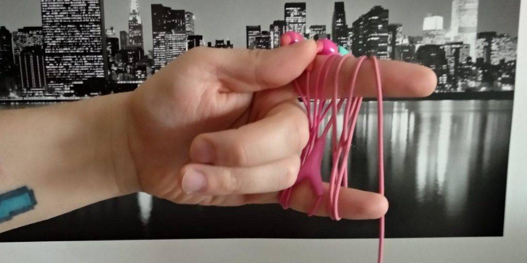 - Затем оставшийся конец накручивается на центр скрутки, и все готово. Гаджет можно смело помещать в карман, провода останутся аккуратно смотанные, а также легко распутаются.