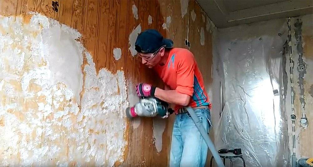 - если основа изготовлена из ткани, то после её демонтажа стеновую поверхность обработать шлифовальным кругом или любым другим инструментом.