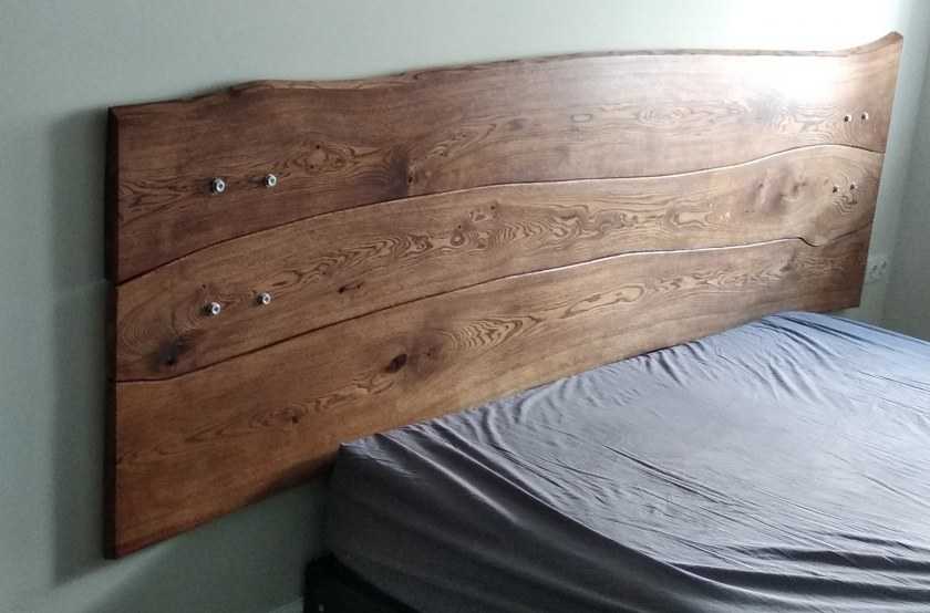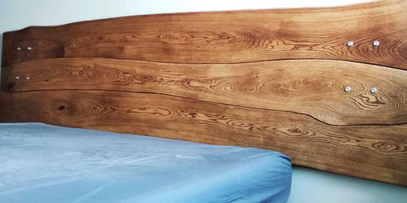 Конструкция самого ложа остается неизменной, а вот изголовье требует особого подхода к делу. Обычно его изготавливают из цельного дерева путем спила ствола под определенным углом специальным инструментом. После тщательной обработки заготовка приобретает вид готовой детали спального ложа.