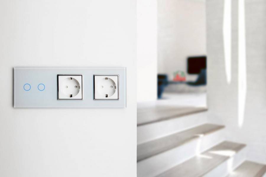 - Обычные розетки и выключатели устанавливаются в ряд и закрываются общей декоративной панелью. Можно ли в этом ряду установить сенсор? Нет, но есть устройства со встроенными розетками, в том числе с дистанционным отключением.