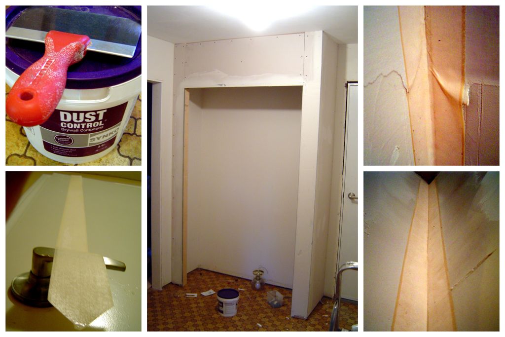 - Для тех, кто раньше никогда не занимался этим, лучше приобрести готовую к употреблению смесь — шпаклёвку. Знакомые с такой работой мастера предпочитают готовить её прямо на рабочем месте из сухого порошка. Для новичков готовая смесь предпочтительнее, к тому же в закрытой герметично таре она может храниться довольно долго и её можно затем использовать для других проектов. Работа производится одним широким шпателем. Маленький служит для набирания шпаклёвки на основной инструмент и равномерного распределения по нему, а также для нанесения смеси в углах и узких местах.