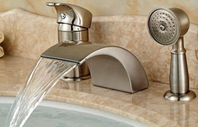 Смесители водопадного типа для бортика ванны выглядят очень эффектно и часто снабжены удобной панелью управления. Но стоимость таких изделий обычно довольно высока