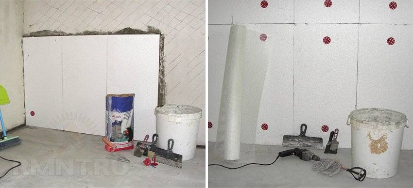 - армирование сеткой и нанесение штукатурки;
