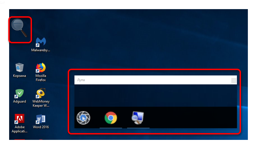 - Для увеличения масштаба самой лупы используйте сочетание клавиш Win+;