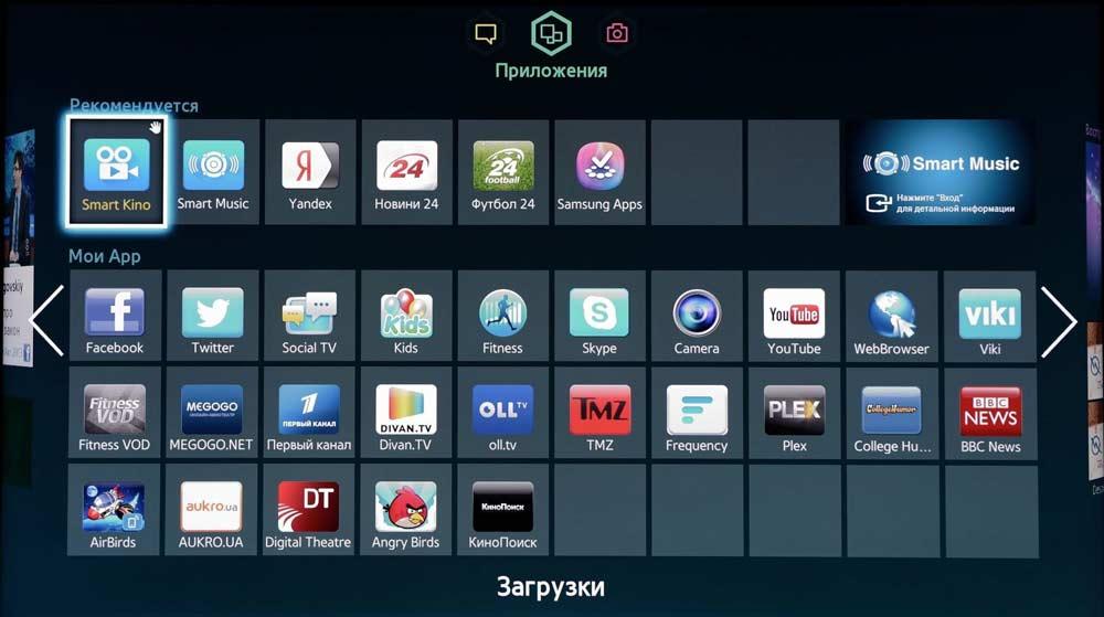 - В Смарт ТВ имеется свой магазин с приложениями. Нужно открыть его и войти.