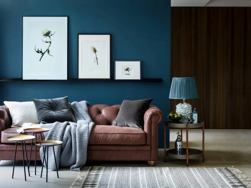 Для сочетания предметов интерьера со стенами используют мебель выдержанных тонов для колоритных стен.