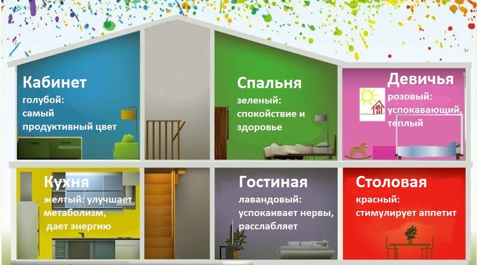 Ученые доказали, что тот или иной оттенок может по-разному влиять на эмоциональное состояние человека. Потому, одни цвета предпочтительны для зон отдыха (спальня, детская), а другие — для комнат, где человек работает или общается. Нужно учитывать этот нюанс, создавая атмосферу помещения.
